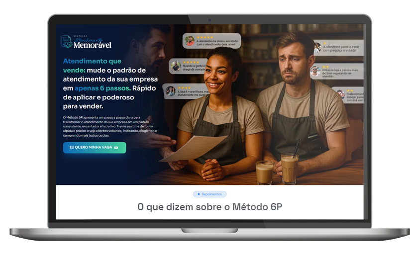 Nada disso. O Método 6P foi feito pra quem vive o dia a dia da loja, não pra quem tem tempo pra teorias. Tudo é explicado com exemplos reais, linguagem simples e frases prontas pra colocar em prática ainda hoje — mesmo que você nunca tenha feito um curso de vendas antes.
